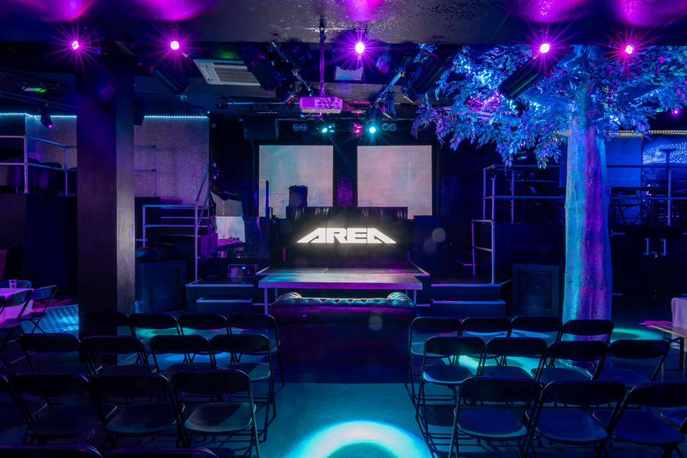 The iconic Lightbox, which takes its name from the 360 degree LED walls that cover the space. Fit with a bar and state of the art soundsystem.